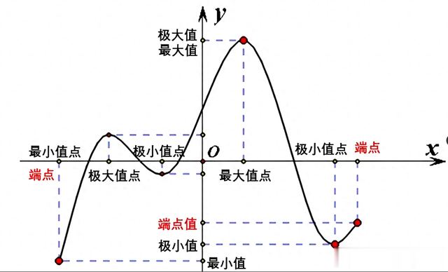 当 $f'(x) = 0$ 且 $f''(x) > 0$ 时,该点为局部极小值(波谷)。